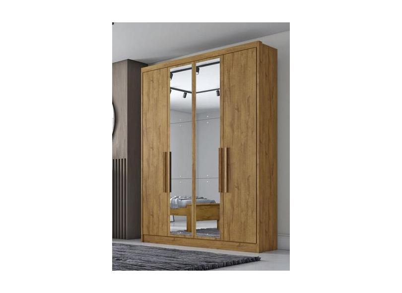 Guarda Roupa Solteiro Com Espelho 4 Portas 3 Gavetas - Sevilha-Cumaru