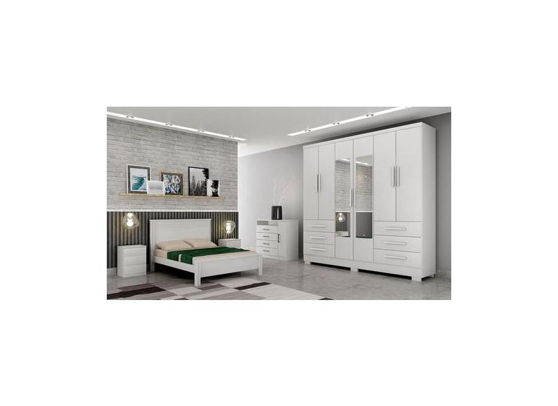 Guarda Roupa Solteiro Com Espelho 6 Portas 6 Gavetas - Berlim-Branco -