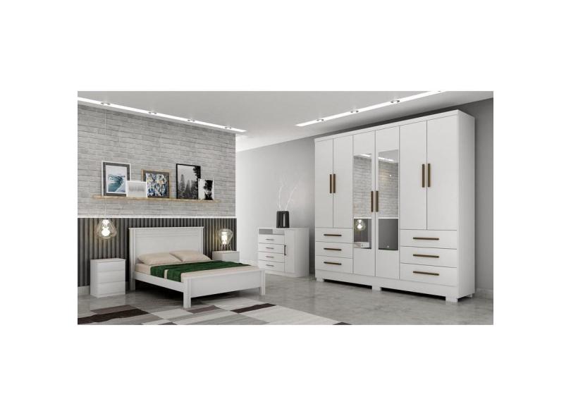 Guarda Roupa Solteiro com Espelho com Pés 6 Portas 6 Gavetas - Encant-Branco - Móveis Novo Horizonte