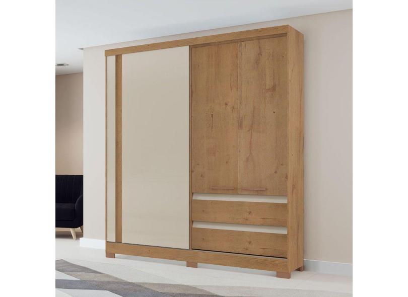 Guarda-Roupa Solteiro Condor 3 Portas 2 Gavetas Ripado 3d Flex Canelato/Natural/Off White - Atualle Móveis