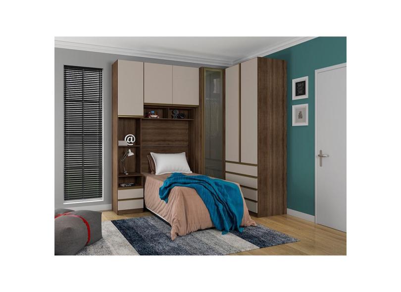 O menor preço encontrado no Brasil para Guarda Roupa Solteiro de Canto com Vidro Reflecta Nogueira Dourado com Connect Prime Luciane Móveis atualmente é R$ 6.129,84.