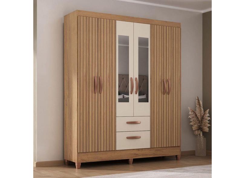 O menor preço encontrado no Brasil para Guarda-Roupa Solteiro Fortaleza 6 Portas 2 Gavetas com Espelho Ripado 3d Canelato/Off White - Atualle Móveis atualmente é R$ 758,90.