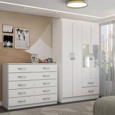 Guarda-Roupa Solteiro Hazel 4 Portas 2 Gavetas e Espelho com Cômoda 10 Gavetas Branco - Panorama Móveis