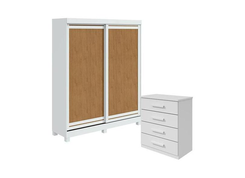 Guarda Roupa Solteiro Lani Com Pés E Cômoda Baião Branco Amêndoa Clean