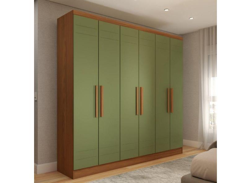 Guarda-Roupa Solteiro Luxemburgo 6 Portas 2 Gavetas Nature/Verde Hp - Panorama Móveis