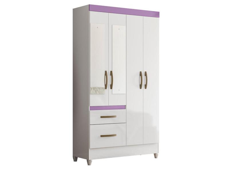 Guarda Roupa Solteiro Madri 4 Portas e 2 Gavetas com Espelho - Moval Branco/Lilás