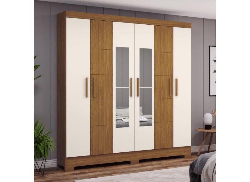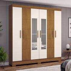 Guarda-Roupa Solteiro Malbec 6 Portas 2 Gavetas com Espelho Nature/Off White - Henn