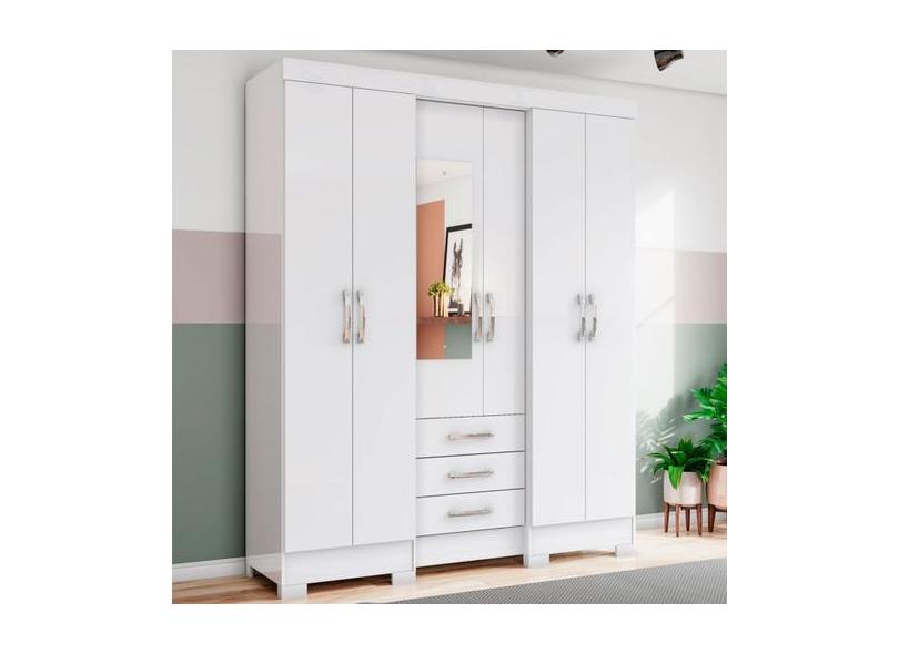 Guarda-Roupa Solteiro Mentor 6 Portas 3 Gavetas com Espelho Branco - B