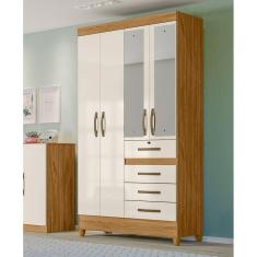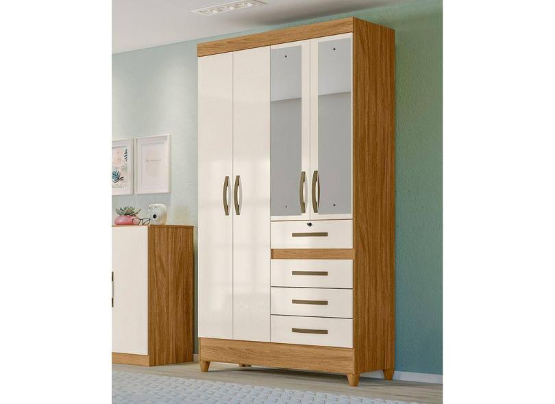 Guarda Roupa Solteiro Moval Sobral Freijó Off White 4 Portas 4 Gavetas c/ Espelho