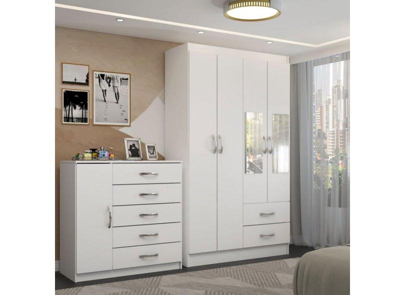 O menor preço encontrado no Brasil para Guarda-Roupa Solteiro Noah 4 Portas 2 Gavetas com Cômoda 1 Porta 5 Gavetas Branco - Panorama Móveis atualmente é R$ 877,42.