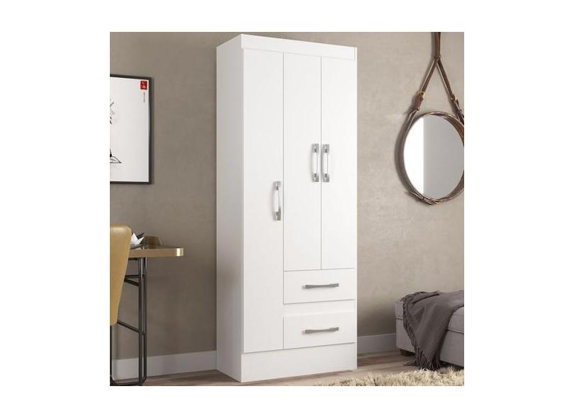 Guarda-Roupa Solteiro Nobre 3 Portas 2 Gavetas Cor Branco - Direto Sim