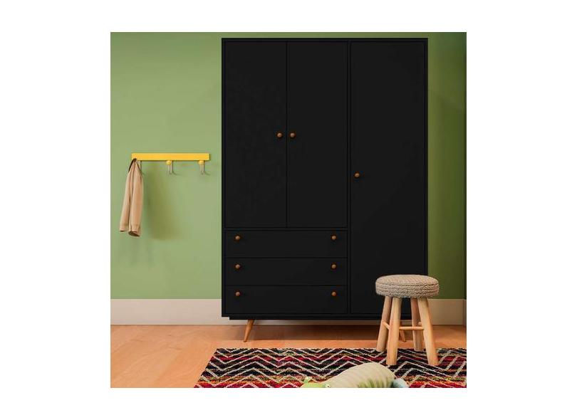 Guarda-Roupa Solteiro Nouve 3 Pt 3 Gv Preto - Mobly