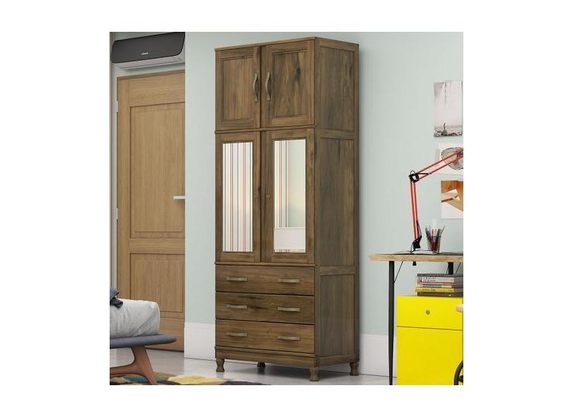 Guarda-Roupa Solteiro Paris 4 Portas 3 Gavetas com Espelho Madeira Ma