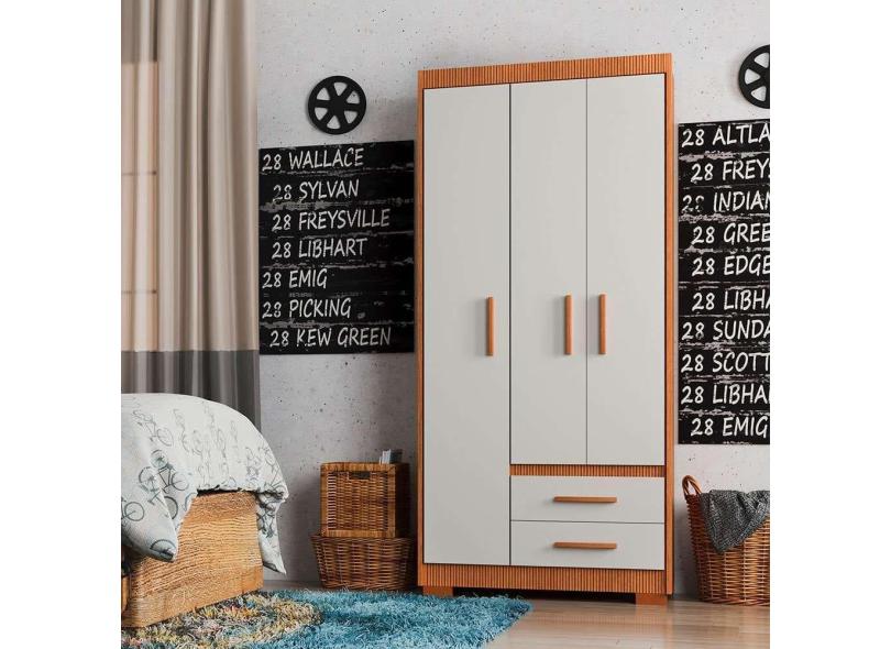 guarda-roupa solteiro priy 3 pt 2 gv freijó wood e off white