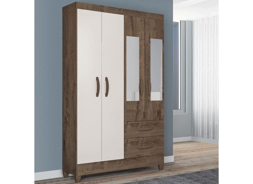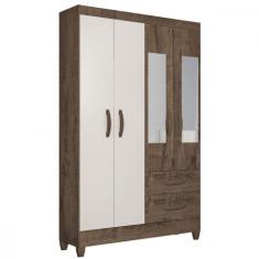 Guarda-roupa Solteiro Real 4 Portas 2 Gavetas Com Espelho Mocaccino Rústico/marrom Off White