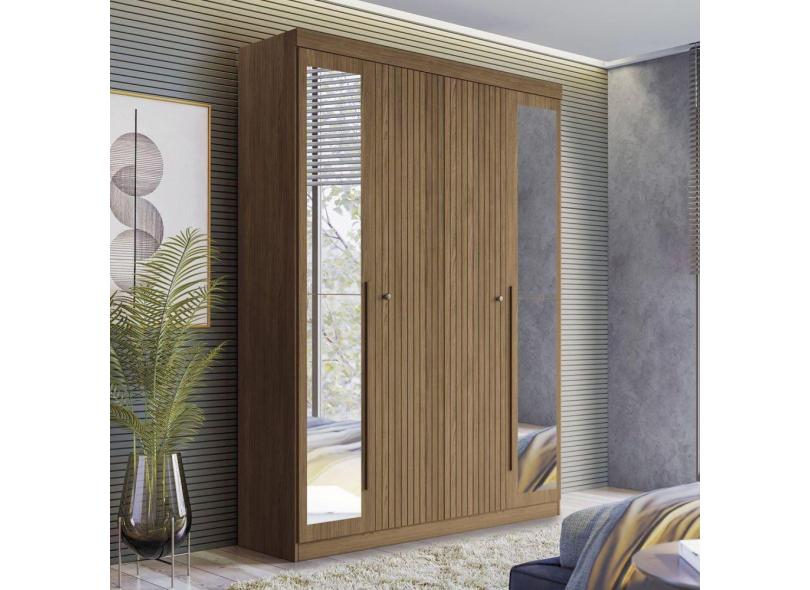 Guarda Roupa Solteiro Ripado 4 Portas 2 Gavetas Antony com Espelhos Jatoba