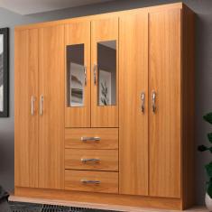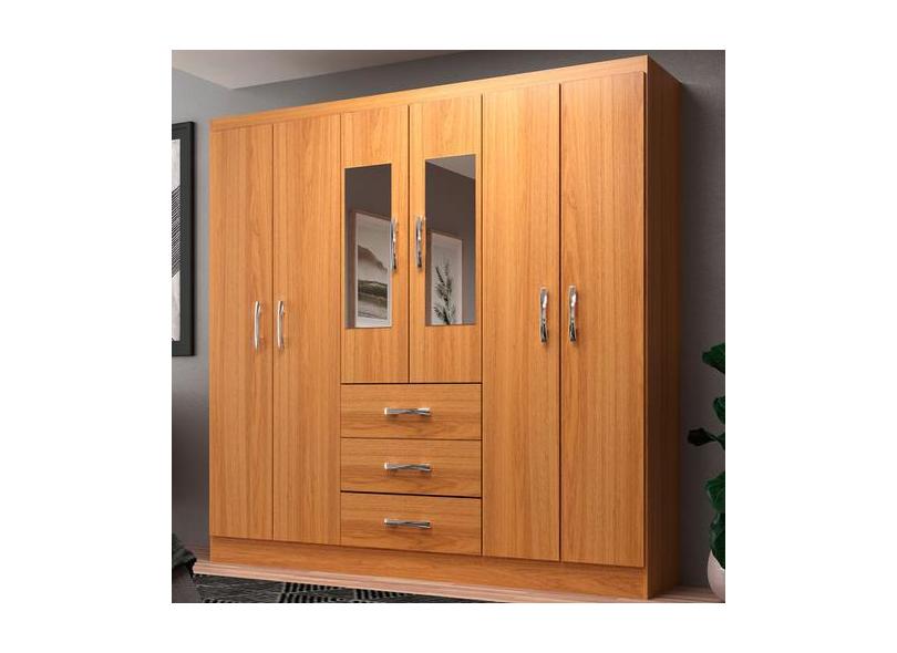 Guarda-Roupa Solteiro Sevilha 6 Portas 3 Gavetas Com Espelho Cinamomo