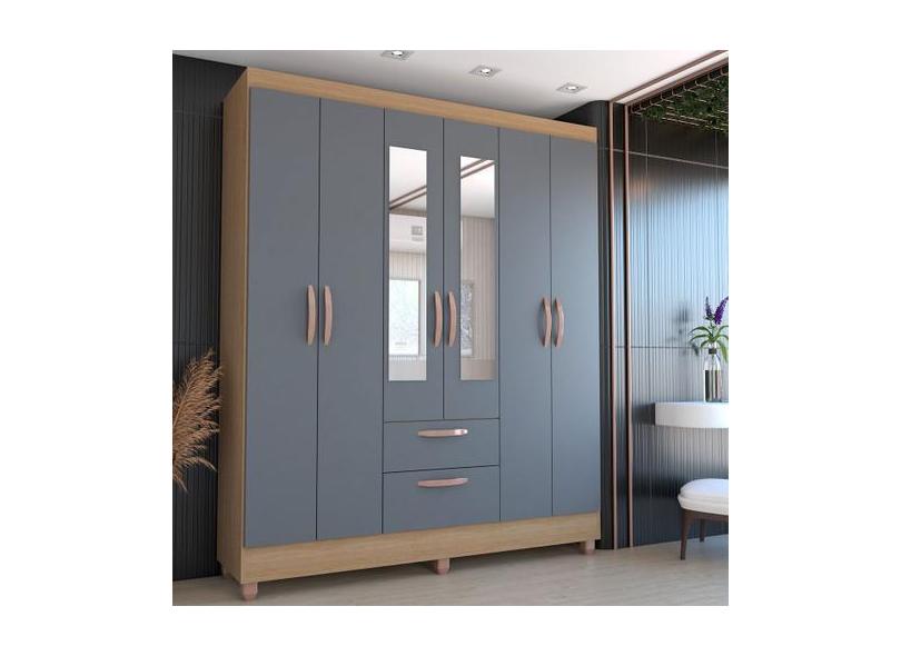 Guarda-Roupa Solteiro Virtuoso 6 Portas 2 Gavetas com Espelho Canelato