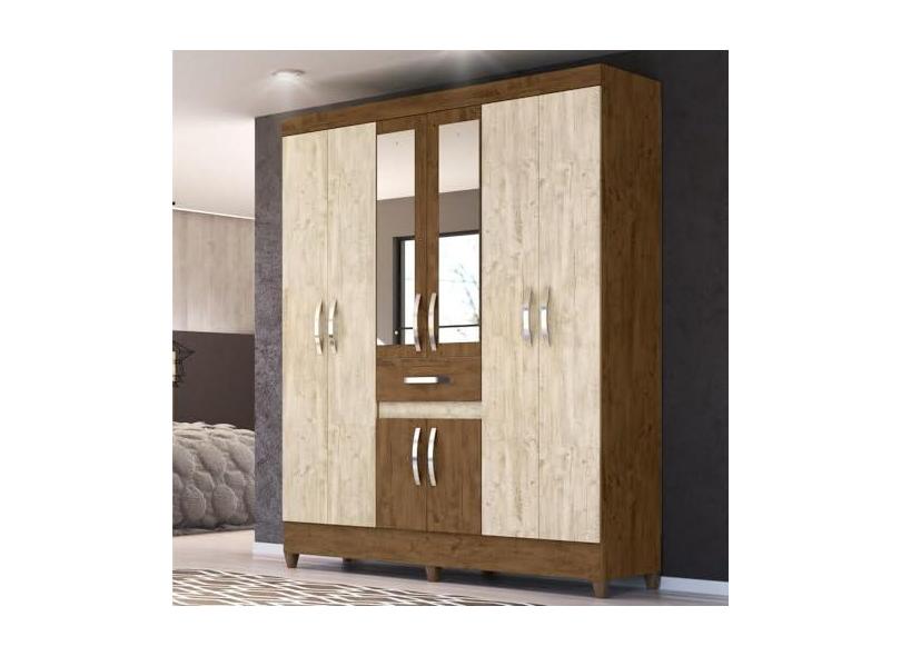 Guarda Roupa Steven Castanho Wood Avelã Wood com Espelho
