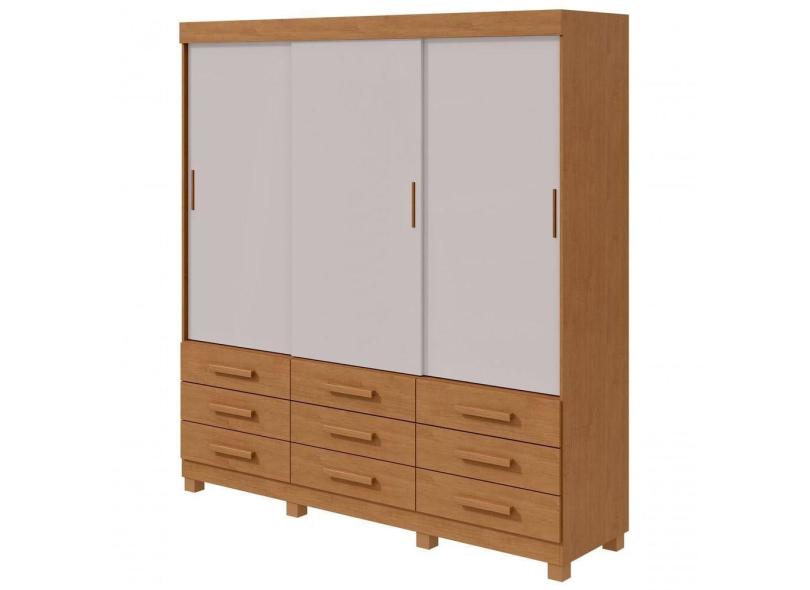 Guarda-roupas 3 Portas 9 Gavetas Anne Sem Espelho Com Pés Amendoa Clean Off White