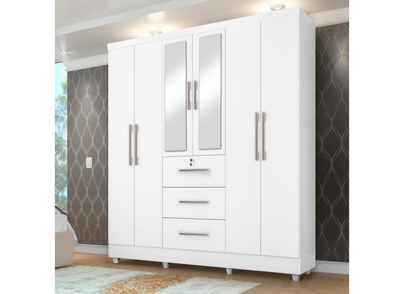 O menor preço encontrado no Brasil para Guarda Roupas Casal Com Espelho 6 Portas 3 Gavetas Com Pés Tokio Branco atualmente é R$ 879,12.