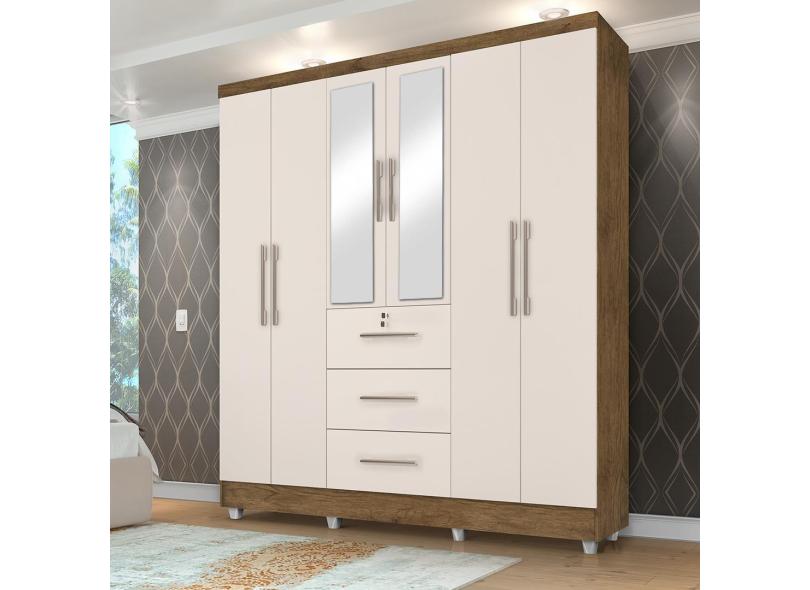 Guarda Roupas Casal Com Espelho 6 Portas 3 Gavetas com pés Tokio Jequitibá / Off White