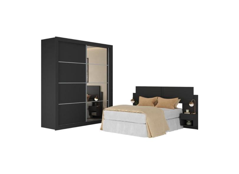 Guarda Roupas Casal Espelho E Cabeceira Com 2 Mesas De Cabeceira Multimóveis MP4327 Preto
