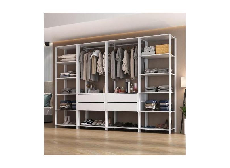 O menor preço encontrado no Brasil para Guarda-Roupas Closet Modulado 270cm 4 Peças com 4 Gavetas e Cabideiros atualmente é R$ 1.205,59.