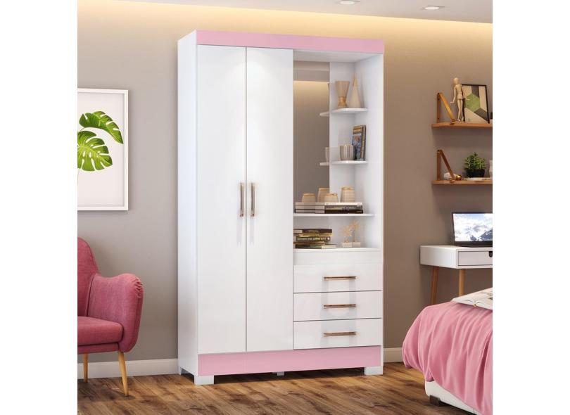 O menor preço encontrado no Brasil para Guarda Roupas Solteiro Com 2 Portas 3 Gavetas Com Espelho B64 Flex Branco / Rosa Chá - Briz Móveis atualmente é R$ 769,32.