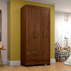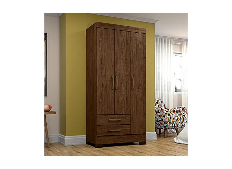 Guarda Roupas Solteiro Com 3 Portas 2 Gavetas Sem Espelho BE16 Castanho - Briz Móveis
