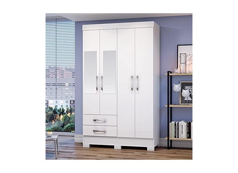 O menor preço encontrado no Brasil para Guarda Roupas Solteiro Com 4 Portas 2 Gavetas Com Espelho BE12 Branco - Briz Móveis atualmente é R$ 738,52.