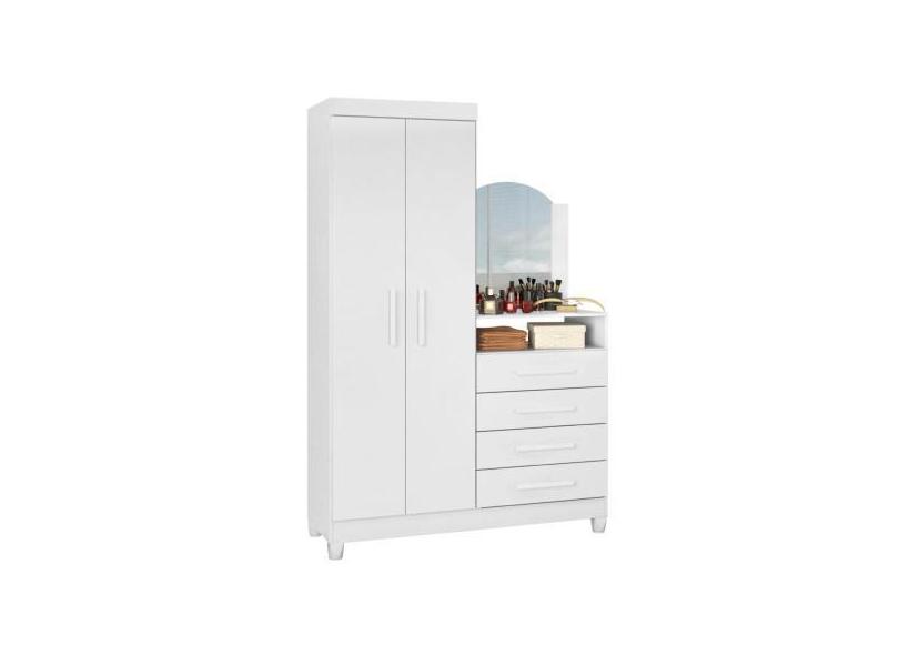 Guarda Roupas Solteiro Com Cômoda Espelho Capri Branco - ALBATROZ MOVE