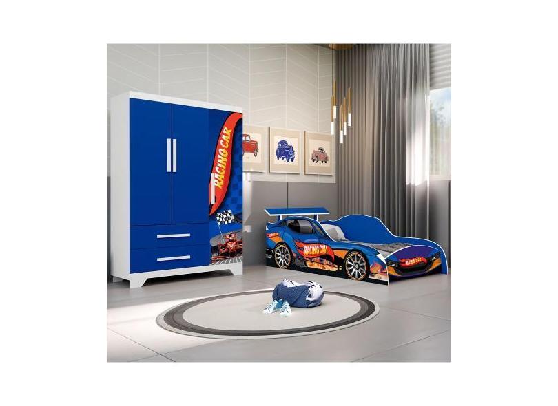 Jogo De Quarto Infantil - Cama E Guarda Roupa Carro - Azul - GD MóVEIS