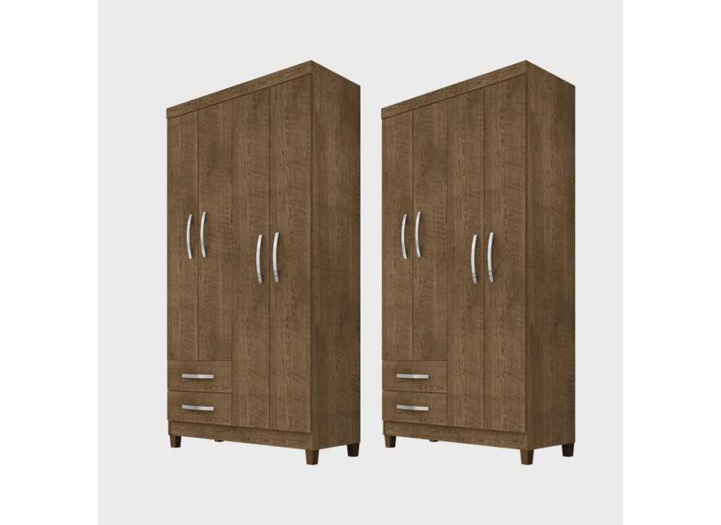 Kit Com 2 Guarda Roupa Solteiro 4 Portas 2 Gavetas Modena Malbec Incorplac