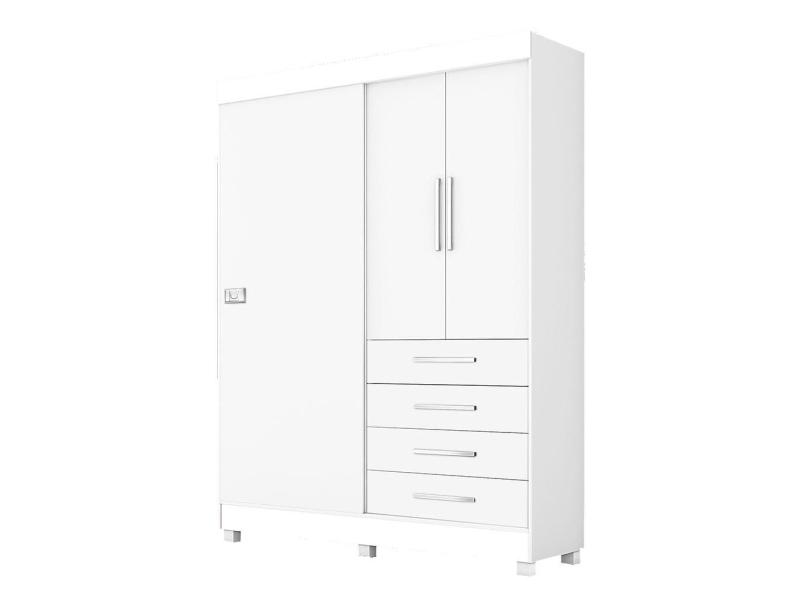 Módulo Georgia Guarda Roupa 3 Portas e 4 Gavetas Branco / Branco / Rosa J&A Móveis