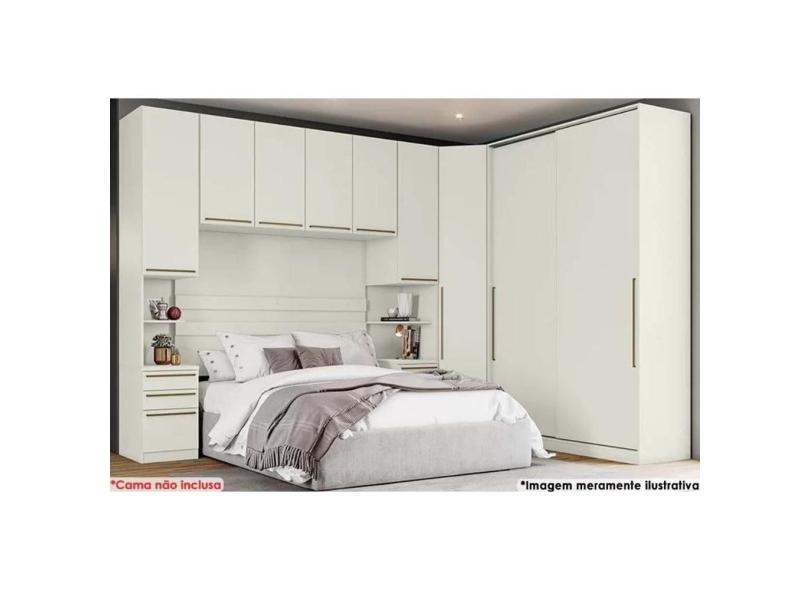 Quarto Casal Modulado Seletto 5 Peças (1 Ponte + 1 Closet Canto + 1 Guarda Roupa 2 Portas de Correr + 2 Complementos) QM121 Areia - Henn