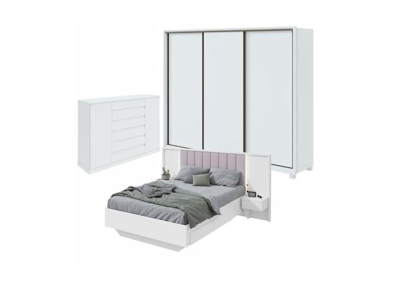O menor preço encontrado no Brasil para Quarto com Guarda-roupa 3 Portas 6 Gavetas, Cômoda 2 Portas 7 Gavetas e Cama Solaris Branco atualmente é R$ 4.053,51.