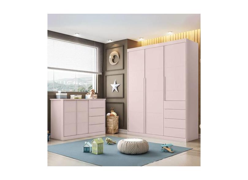 Quarto Completo Com Guarda Roupa 3 Portas E 4 Gavetas + Cômoda 2 Porta