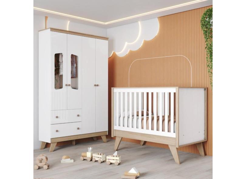 O menor preço encontrado no Brasil para Quarto de Bebê com Guarda Roupa 4 Portas e Berço 3 em 1 Retrô Theo Espresso Móveis Branco/Jequitibá HP atualmente é R$ 1.395,70.