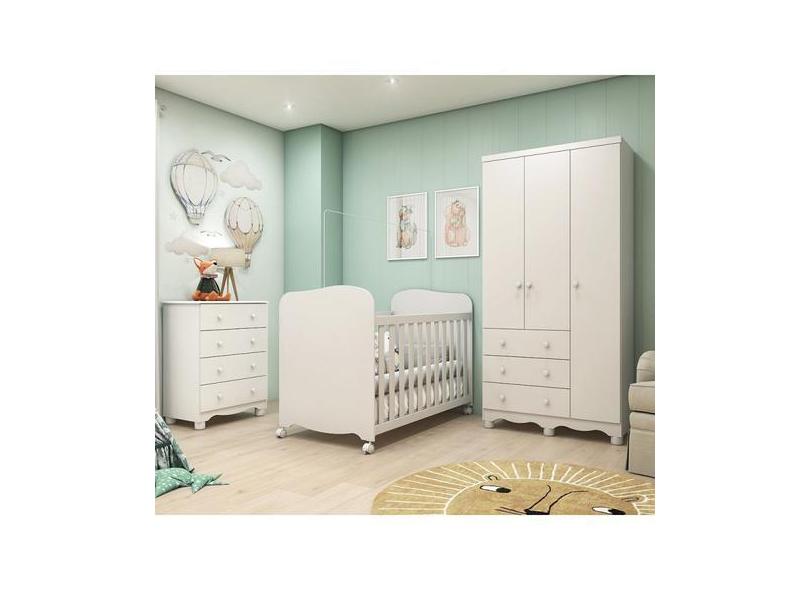 Quarto De Bebê Com Guarda Roupas 3 Portas Cômoda E Berço Com Rodizio M