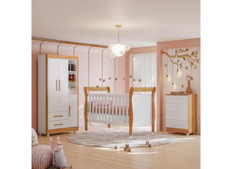 O menor preço encontrado no Brasil para Quarto de Bebê Completo com Cômoda, Berço com Colchão e Guarda Roupas Mia Branco/Amadeirado atualmente é R$ 1.368,87.