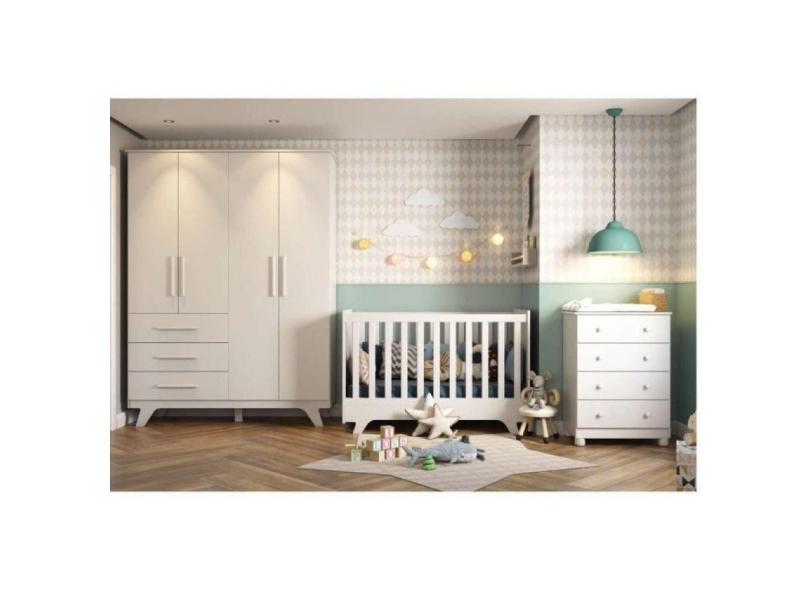 O menor preço encontrado no Brasil para Quarto de Bebê Completo com Guarda Roupa 4 Portas 3 Gavetas Cômoda e Berço Retrô Móveis Peroba Branco Brilho atualmente é R$ 2.177,93.