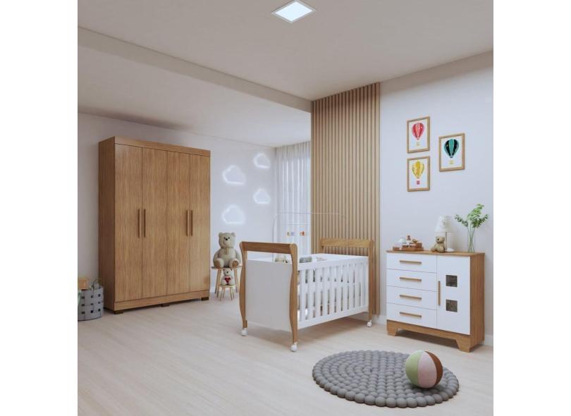 Quarto de Bebê Completo com Guarda-roupa, Berço e Cômoda Manu Amadeirado/Branco