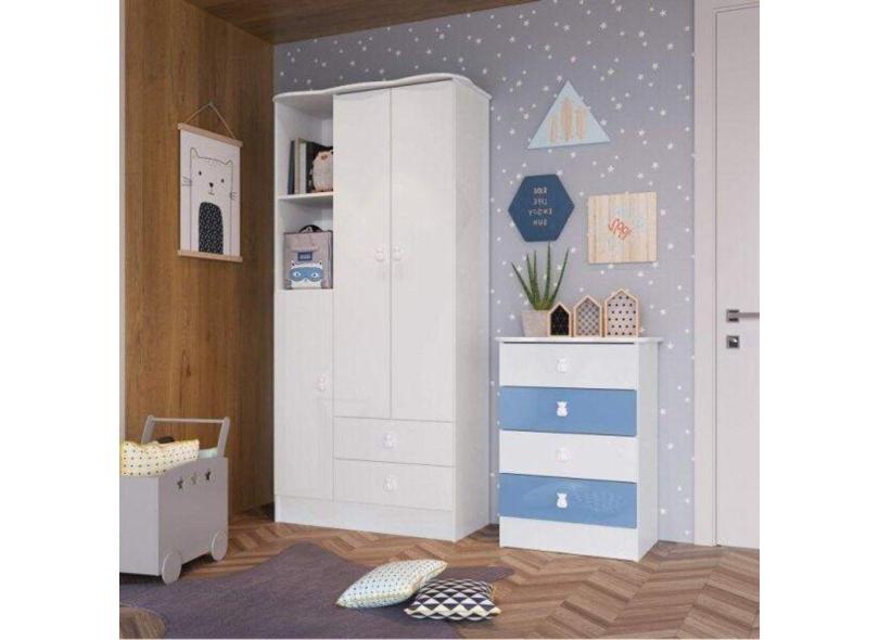 O menor preço encontrado no Brasil para Quarto de Bebê Completo com Guarda-Roupa e Cômoda 376993 Espresso Móveis Branco/Azul atualmente é R$ 851,59.