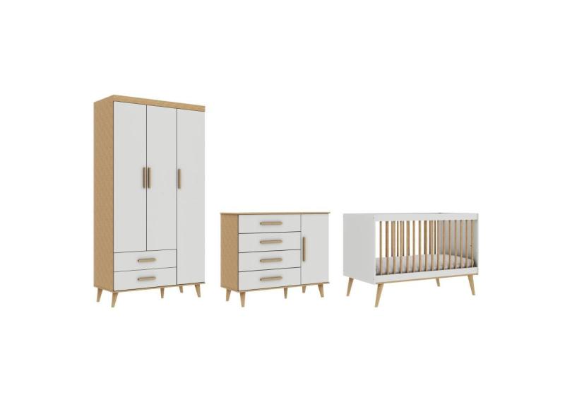 Quarto de Bebê Retrô Berço 3 em 1 Ligia Cômoda com Fraldário Guarda Roupa 3 Portas com Gavetas Off White Carolina Baby