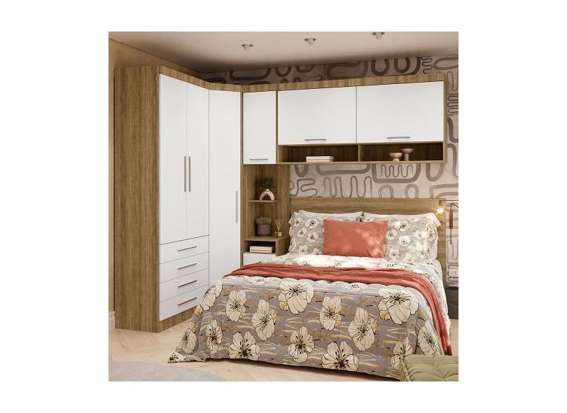 Quarto de Canto Casal com Guarda Roupas Cabeceira Paris Luciane Móveis