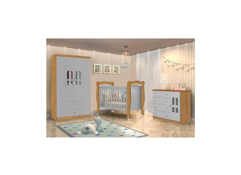 Quarto Infantil Completo com Berço Cômoda e Guarda Roupa Alvin Nature/cinza