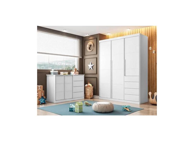 Quarto Infantil Completo Perola Com Guarda Roupa 3 Portas E Cômoda 2 P