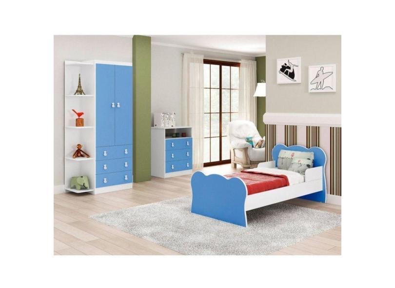 Quarto Infantil Guarda Roupa 2 Portas 3 Gavetas Cômoda 3 Gavetas 1 Nicho Mini Cama DJD Móveis Azul/Branco