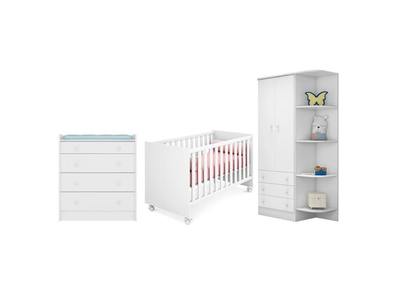 Quarto infantil Guarda Roupa, Cômoda Trocador e Berço Mini Cama Americano Branco – Qmovi